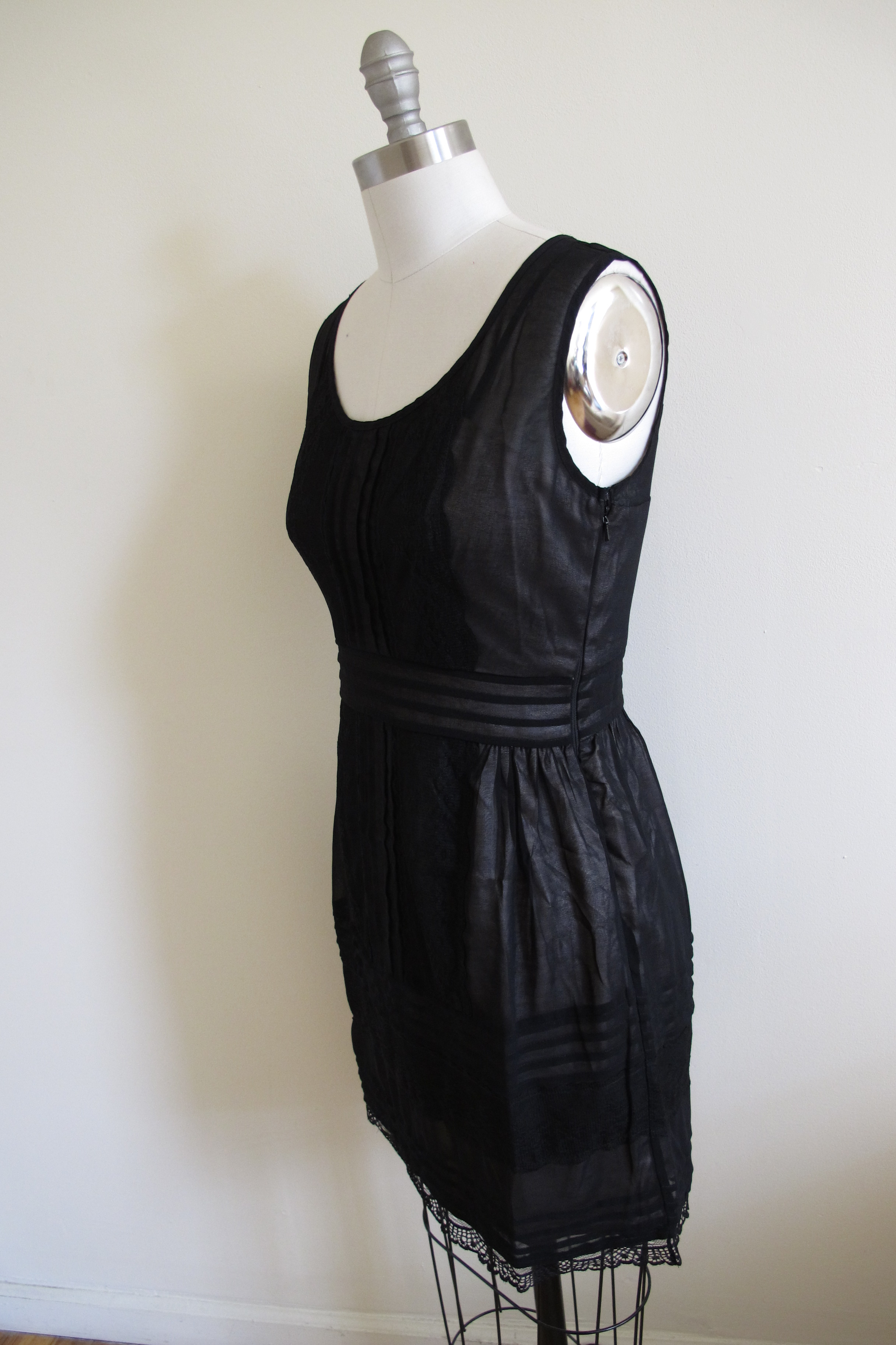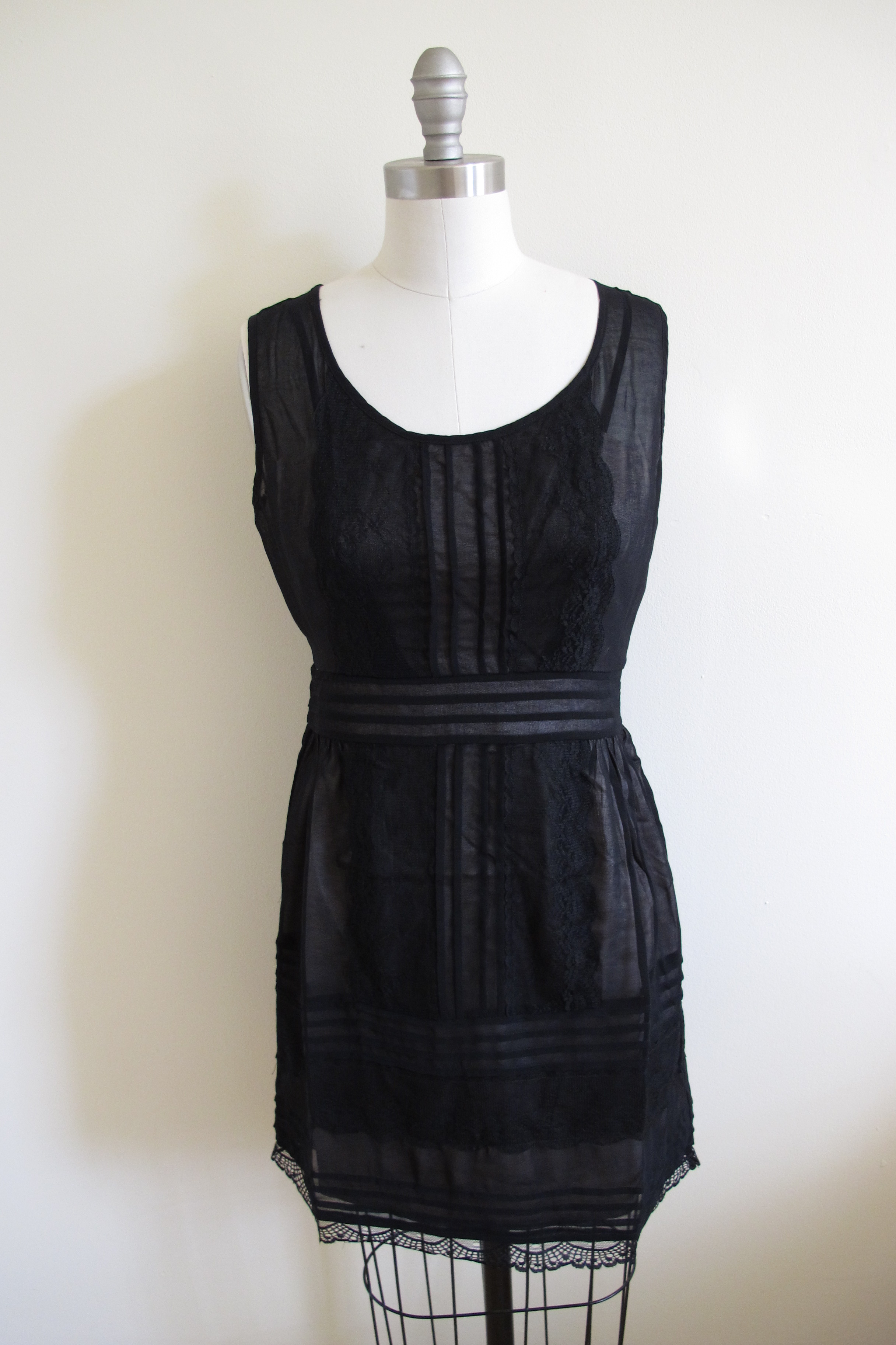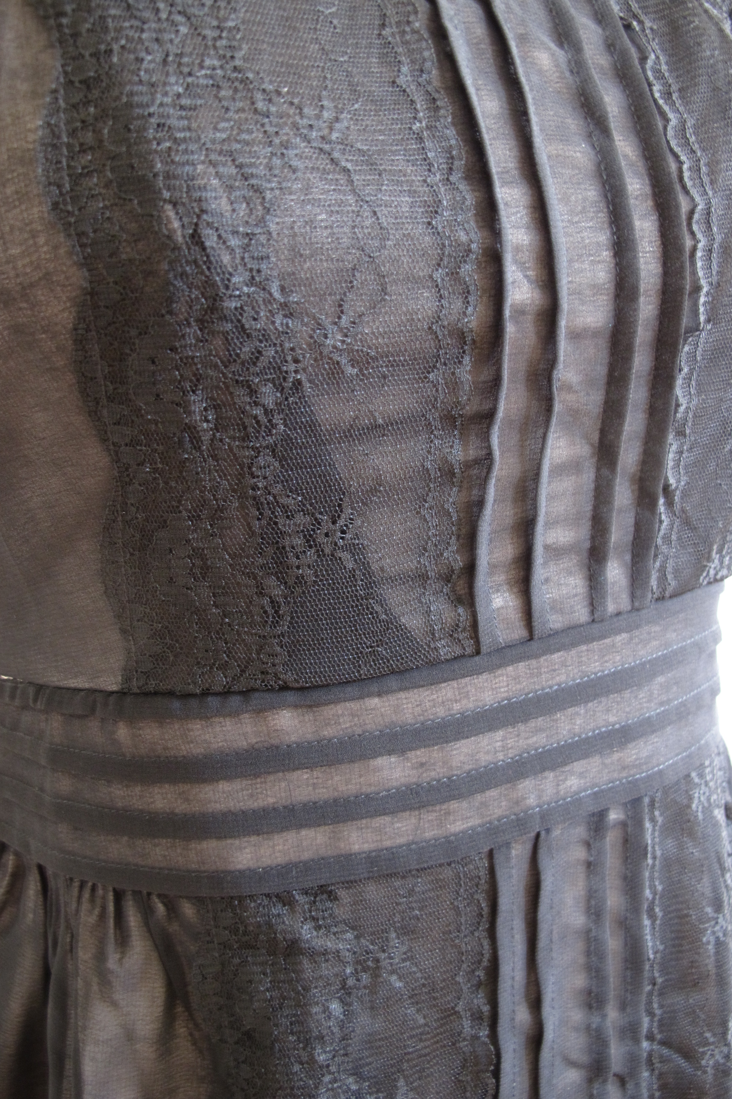 Black lace and pleated dress with nude lining. Enjoy with a Chocolate Penguin Martini.